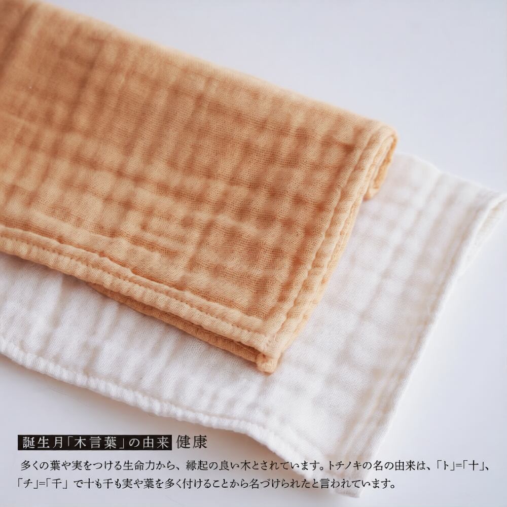 誕生月の木で染めた、ガーゼのミニタオルです。