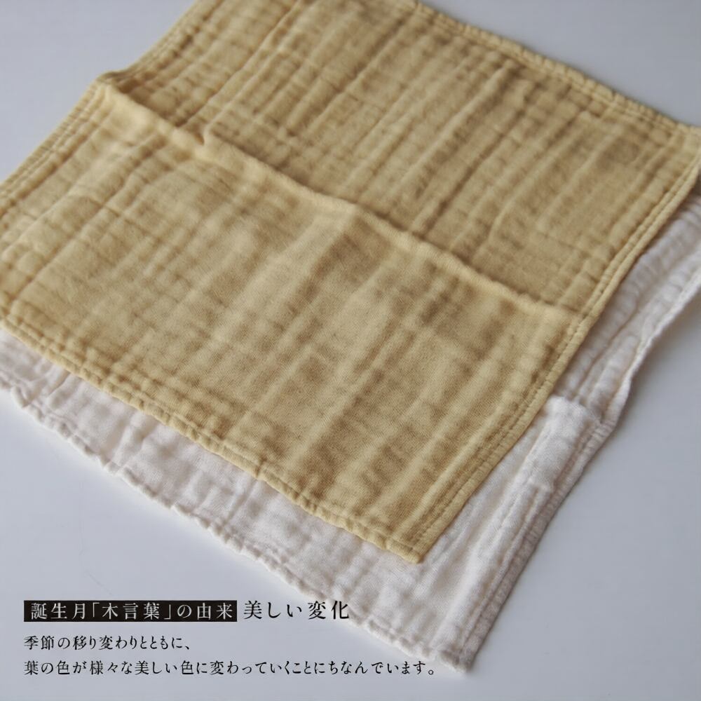 誕生月の木で染めた、ガーゼのミニタオルです。